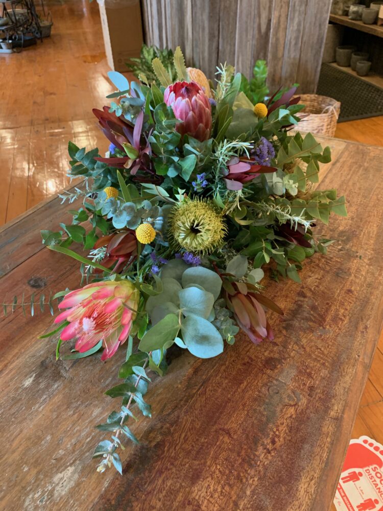 Lies flat suitable for funerals with native seasonal flowers. Product may differ due to flower availability in season.