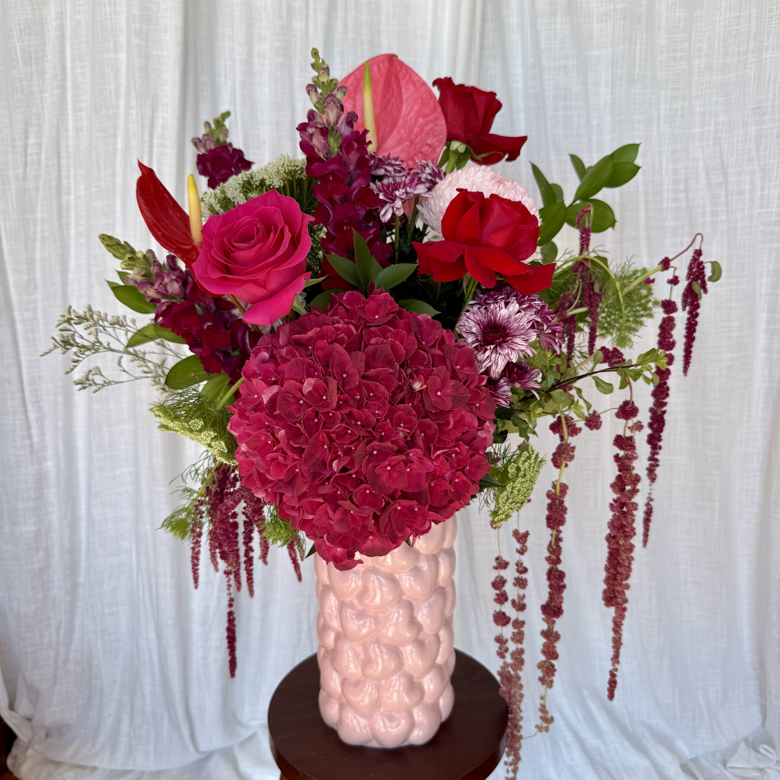 Say ‘I love you” with this breathtaking statement arrangement, in our gorgeous pink heart vase.