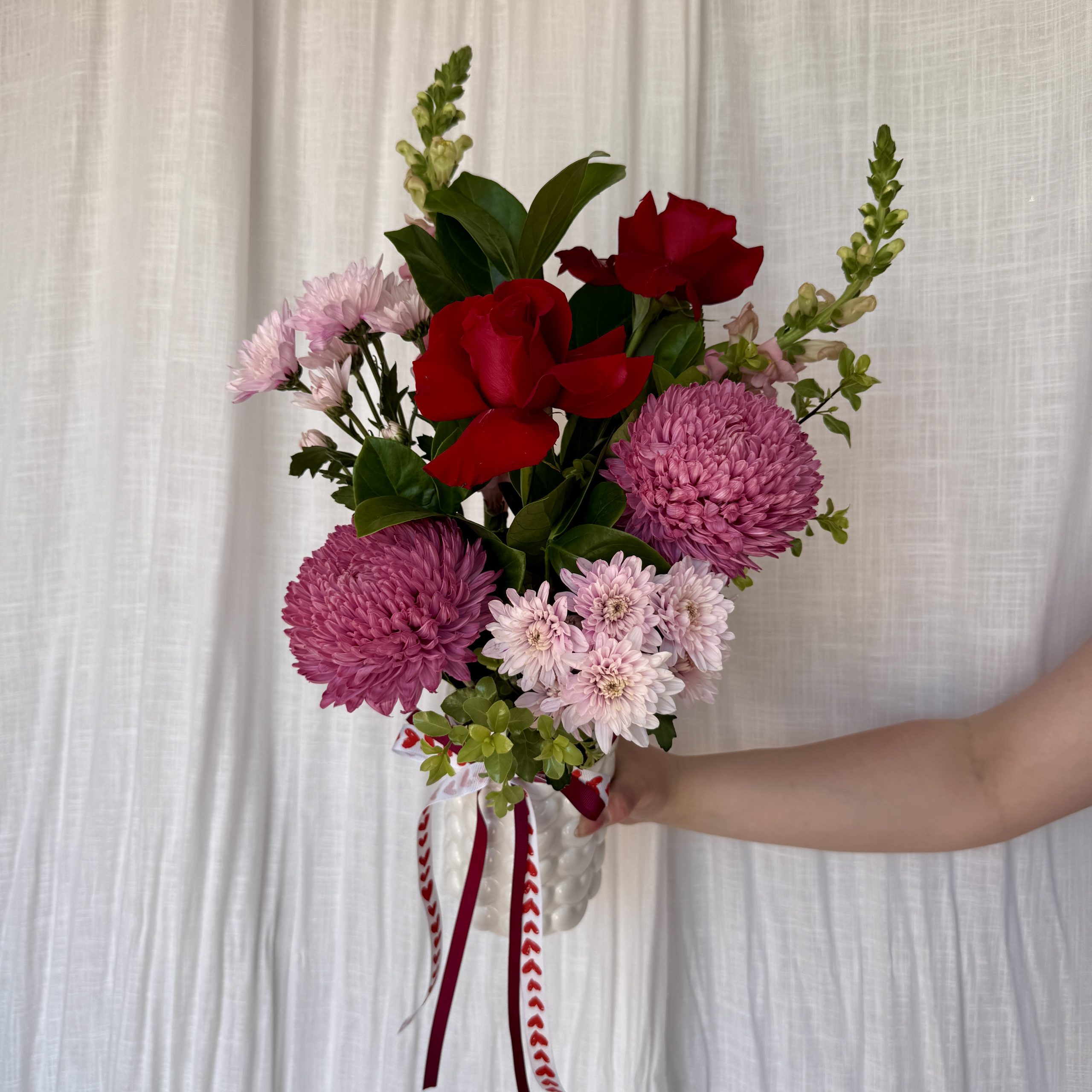 The sweetheart vase is a romantic and thoughtfully designed arrangement, in the sweetest white love heart vase!